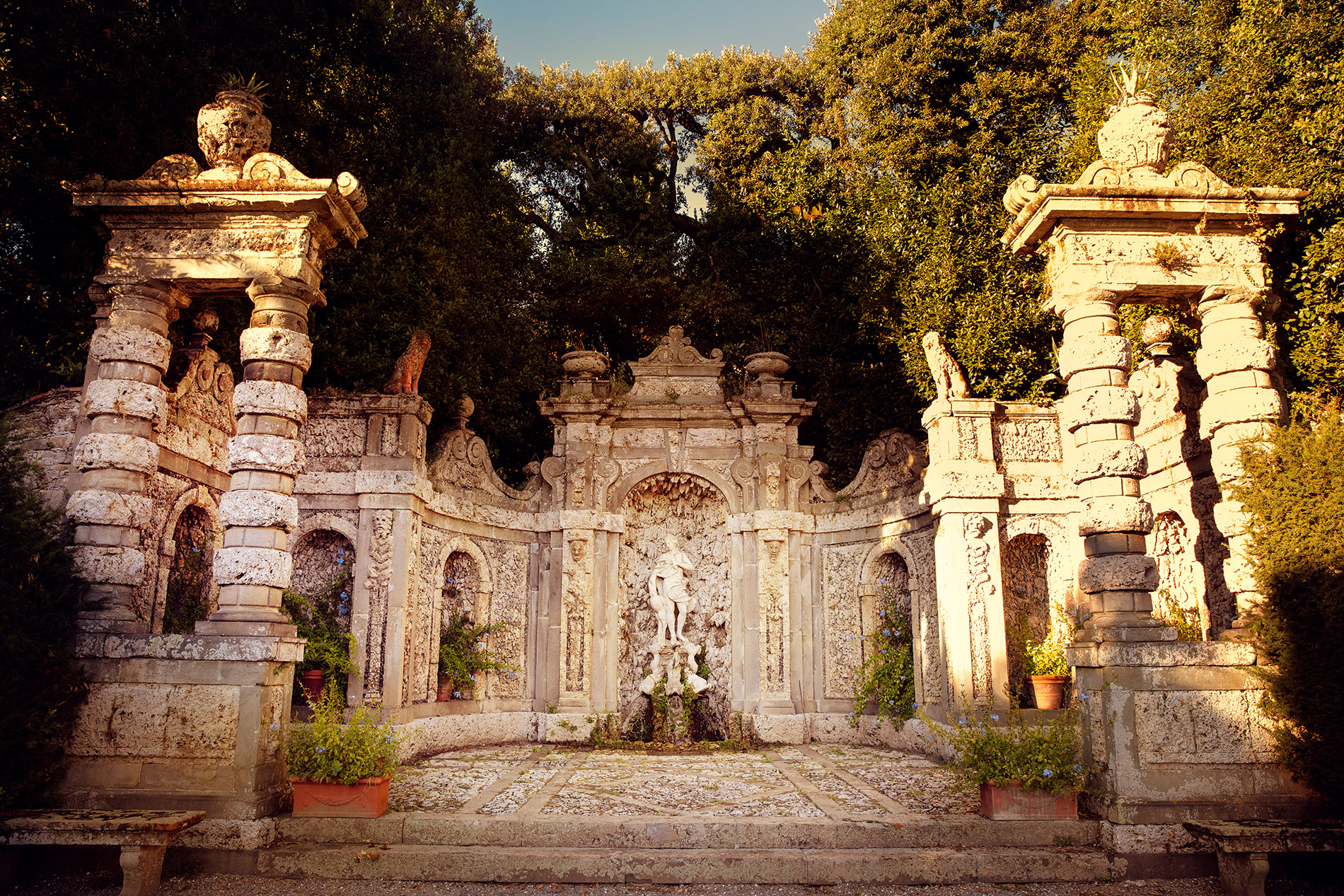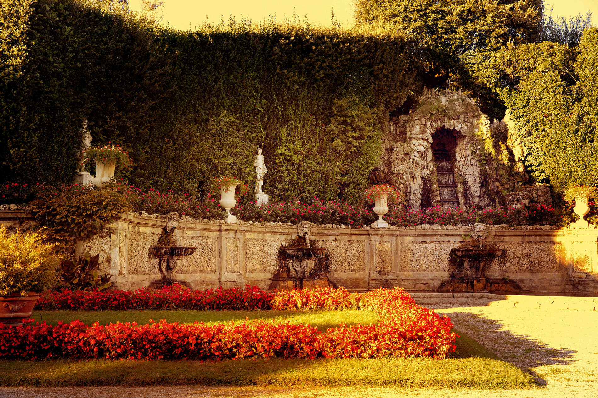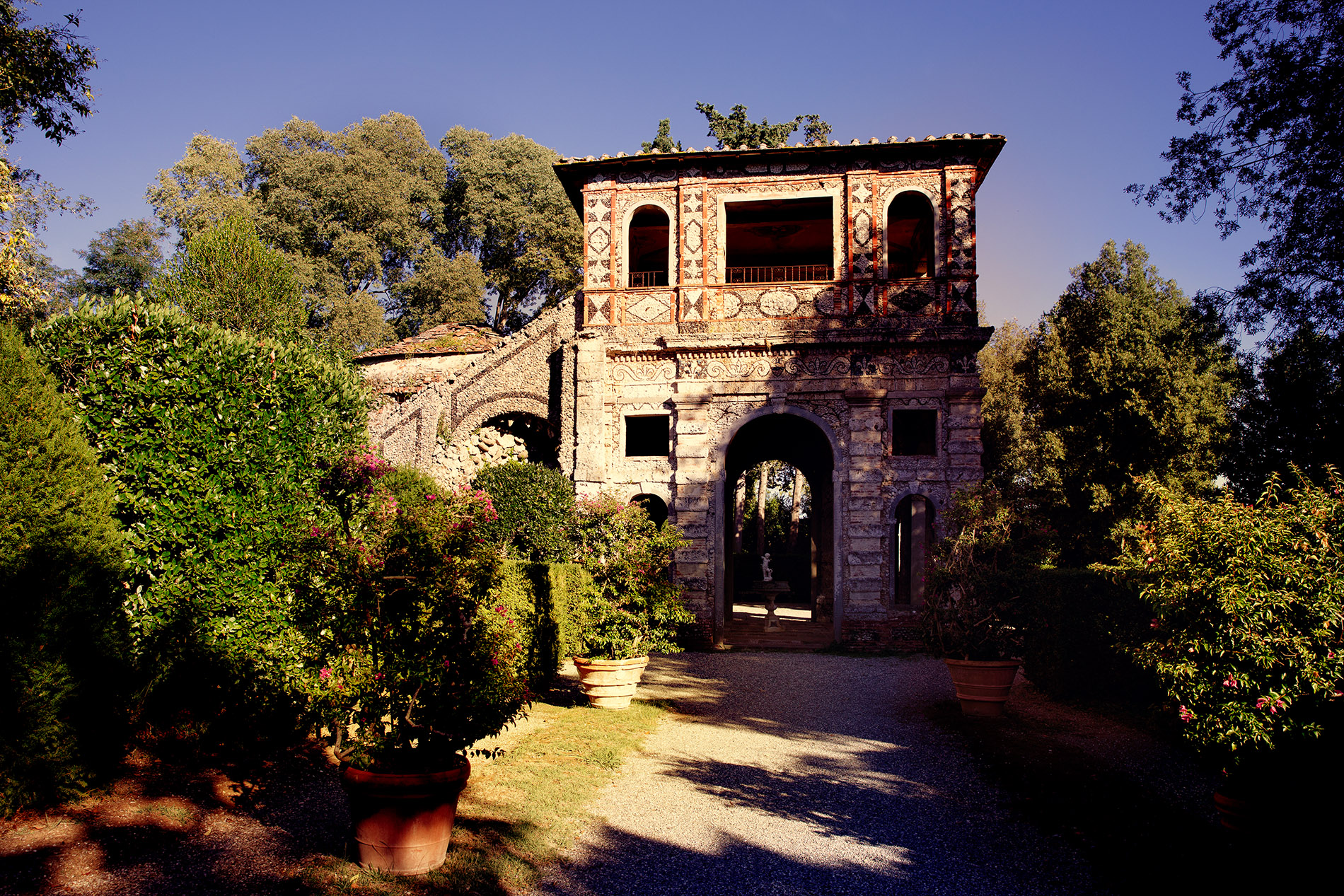 La Villa Reale di Marlia (XVII sec.), circondata da alte mura che sembrano proteggerla dal tempo che passa, sorge a Lucca, nel cuore della Toscana, in una posizione privilegiata ai piedi dell’altopiano delle Pizzorne. Considerata una tra le più importanti dimore storiche d’Italia, nel XIX secolo è stata residenza di Elisa Bonaparte Baciocchi, sorella di Napoleone e Principessa di Lucca. La proprietà si estende su una superficie di 16 ettari e annovera numerosi e raffinati giardini, vere rarità botaniche e imponenti palazzi edificati nel corso dei secoli. Il suo Parco è percorso dai viali delle Camelie ed ospita due famosi Teatri, quello d’Acqua e quello di Verzura (dove si esibì spesso il celebre violinista N. Paganini per Elisa Baciocchi); a impreziosirlo si aggiungono il Giardino dei Limoni, con il gruppo marmoreo di Leda e il Cigno, e il Giardino Spagnolo di gusto Decò. Da non perdere le diverse residenze d’epoca che arricchiscono la visita al Parco come: la Villa del Vescovo (XVI sec.), adiacente al Ninfeo detto “grotta di Pan”, e l’elegante Palazzina dell’Orologio con la loggia panoramica (XVIII sec.).